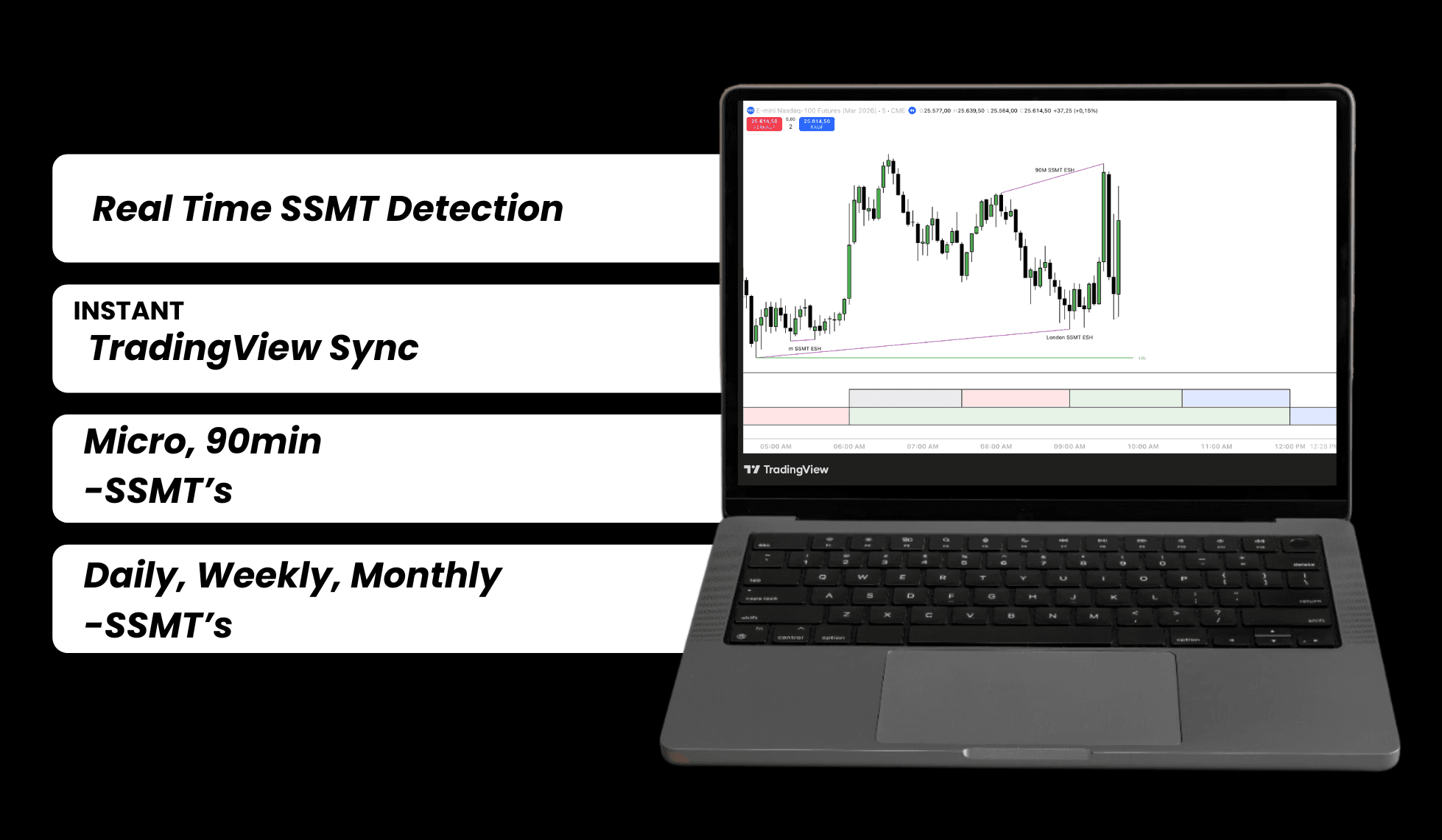 Stop hunting for setups. The indicator detects every SSMT automatically, so you never miss a move.